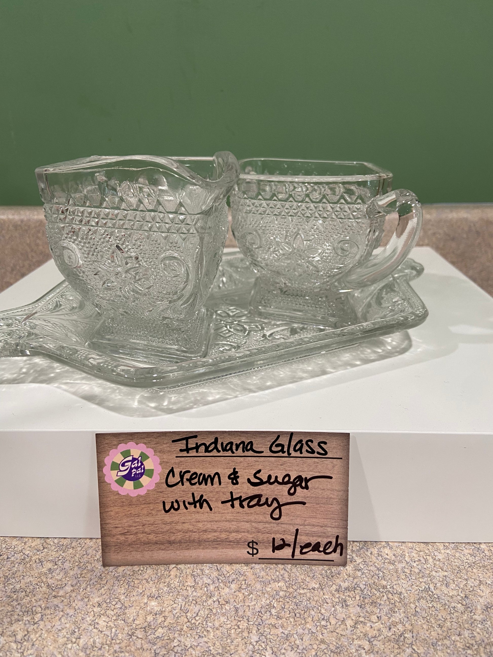INDIANA GLASS CREAM AND SUGAR WITH TRAY SET